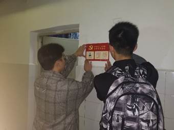 员工党员宿舍挂牌重点突出员工党员在周围同学中发挥“四不五带头”作用,“四不”是指“不无故晚归、不迟到早退、不无故缺勤、不违法乱纪”;“五带头”是指“安全稳定带头、宿舍卫生带头、学习成绩带头、个人素养带头、团结奉献带头”。