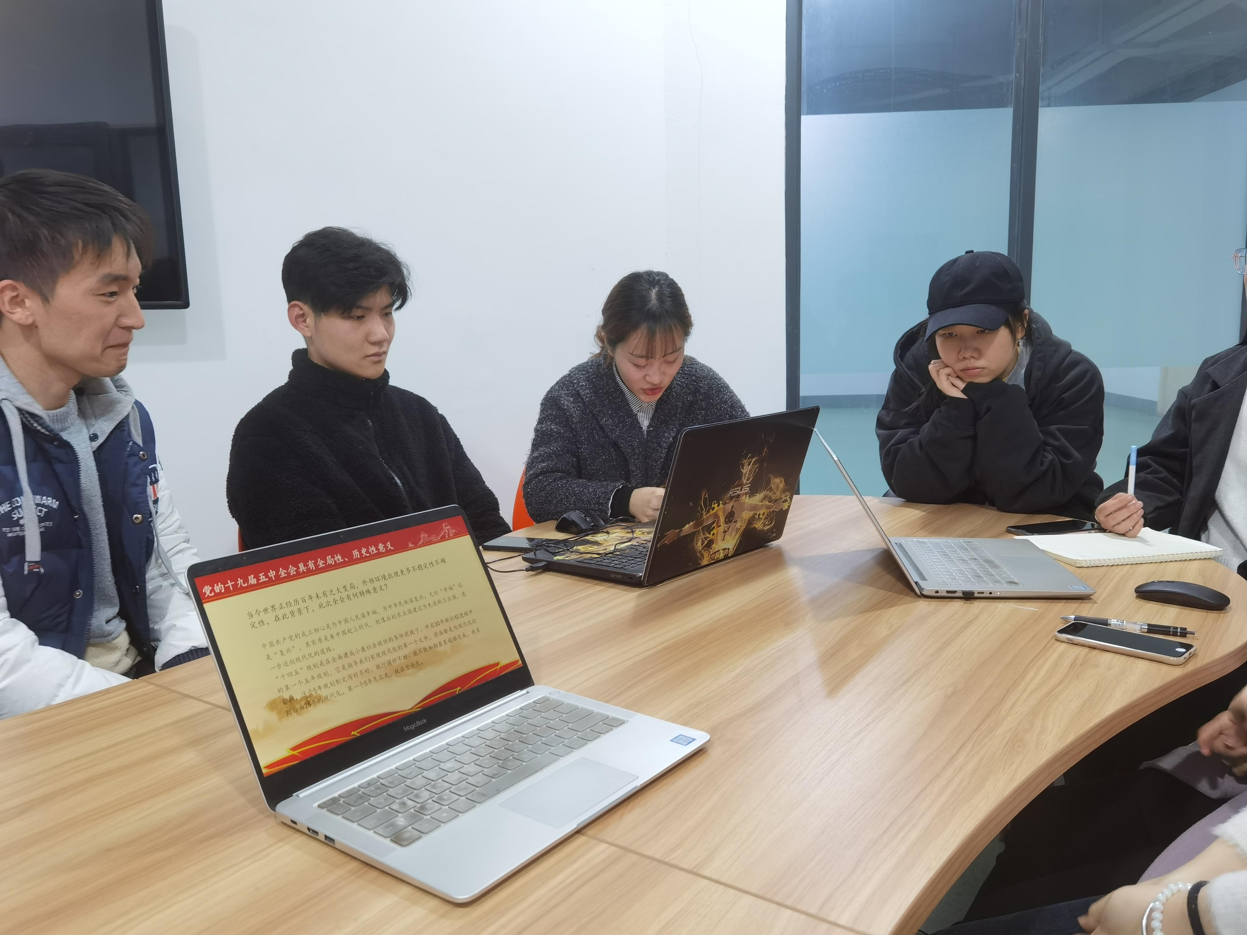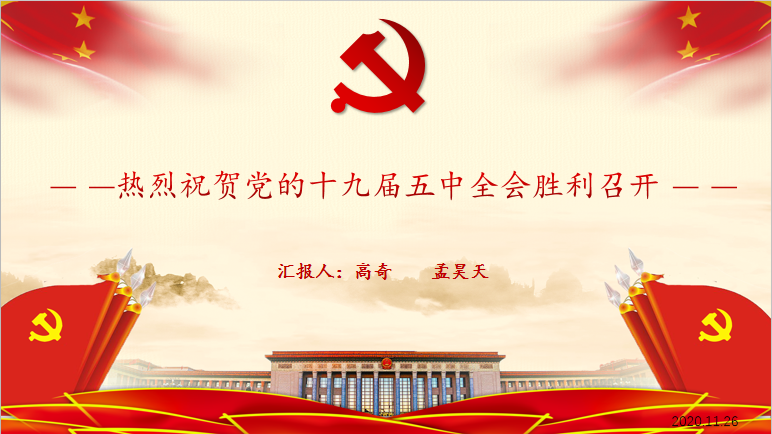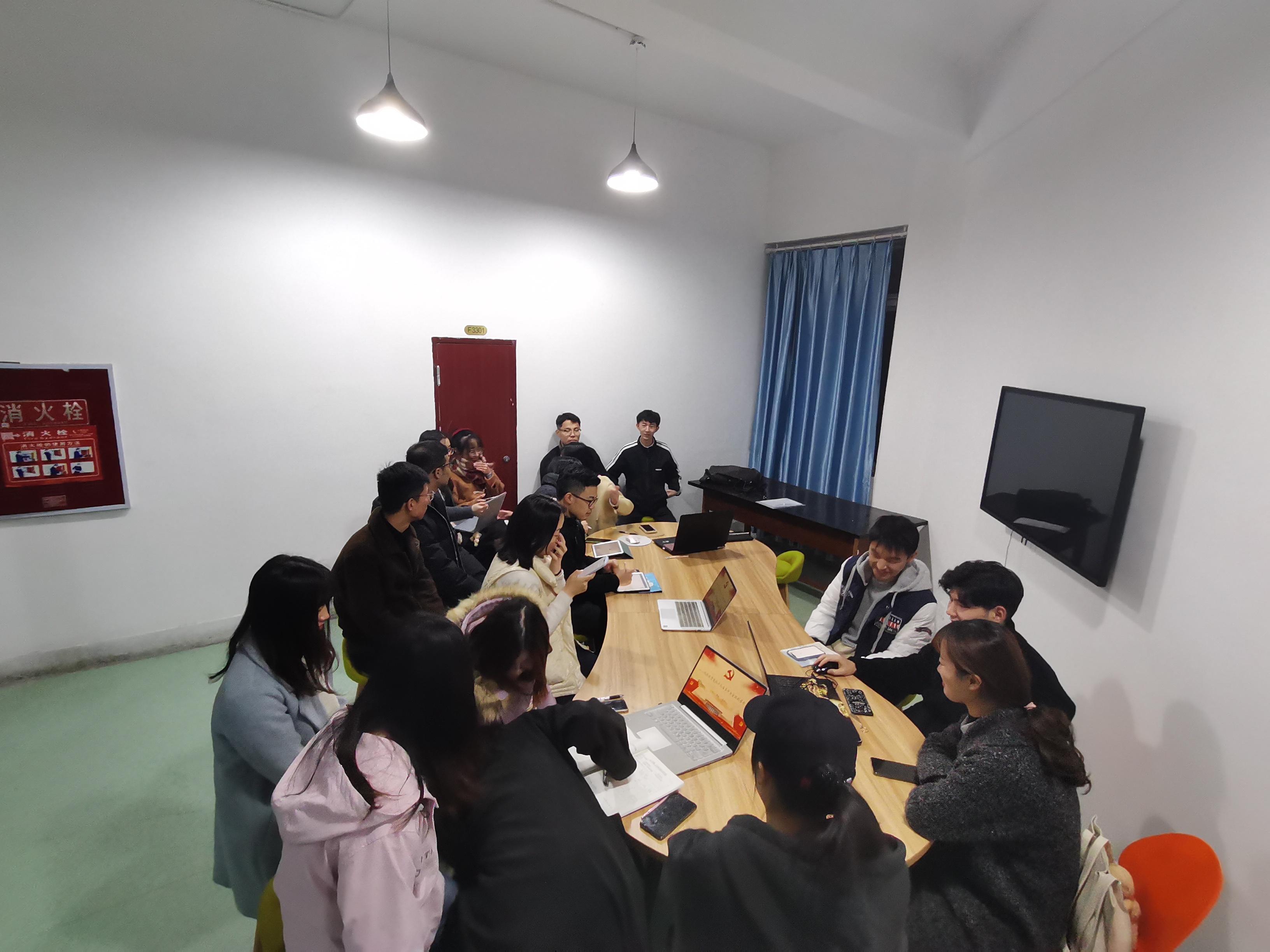 2020年11月26日晚20时30分,公司研究生第十二党支部在三号教学楼3344研讨室召开支部会议,本次会议由孟昊天同志和高奇同志主持,支部党员同志及积极分子共计19人参加。会议上大家学习了十九届五中全会内容和相关会议精神。