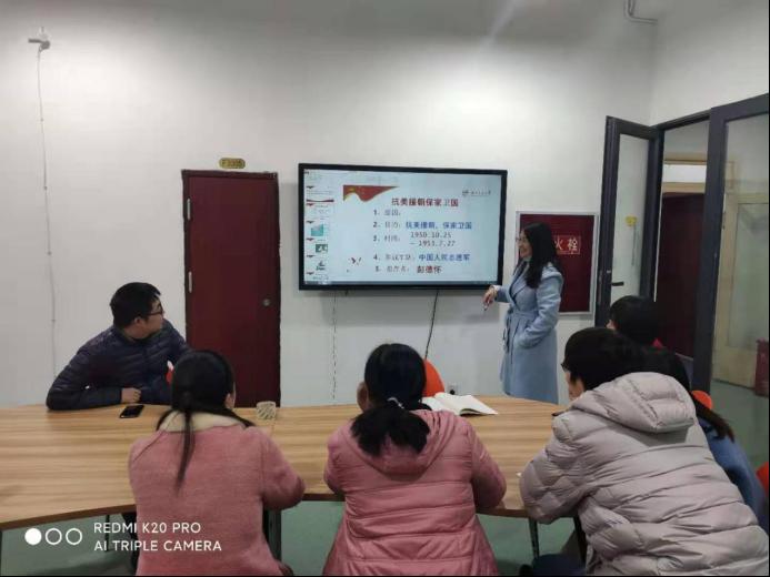 为纪念中国人民志愿军抗美援朝出国作战70周年,铭记历史,传承爱国精神,11月23日下午14时,太阳集团tyc151材料科学与工程公司研究生第九党支部在支部书记严翼飞老师的带领下开展了“继承和弘扬伟大抗美援朝精神,为实现中华民族伟大复兴而奋斗”主题组织生活。本次主题活动旨在弘扬爱国主义为核心的伟大民族精神,激发党员的爱国热情,丰富党员的组织活动。