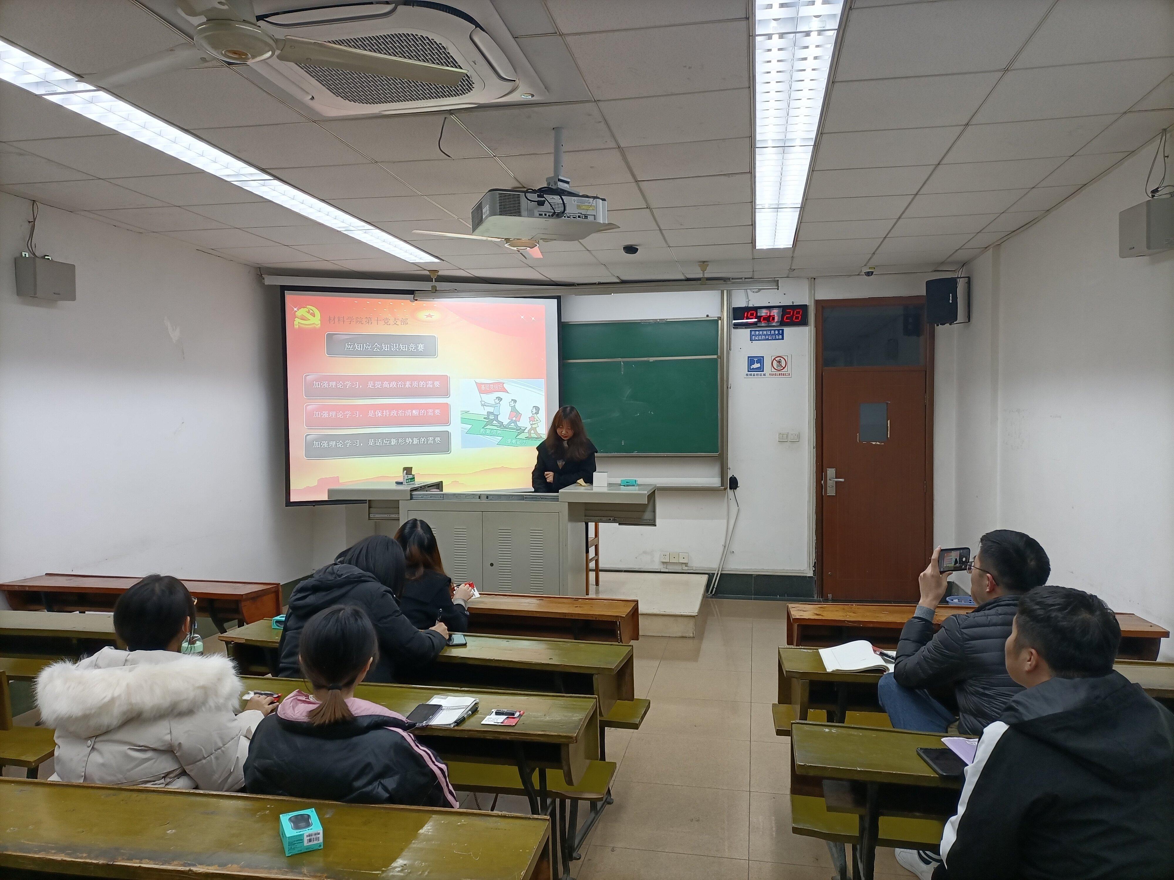 首先进行的是党员应知应会知识竞赛,此次竞赛以加强对习近平新时代中国特色社会主义思想及党建知识学习为目的,以考促学,采取网上答题的形式,以单选题和多选题为主要题型。测试中,大家严格遵守考场纪律,认真答题,展现了良好的作风,测试结束后为前三名同志颁发了奖品,进一步激励大家主动学习,勤于思考。