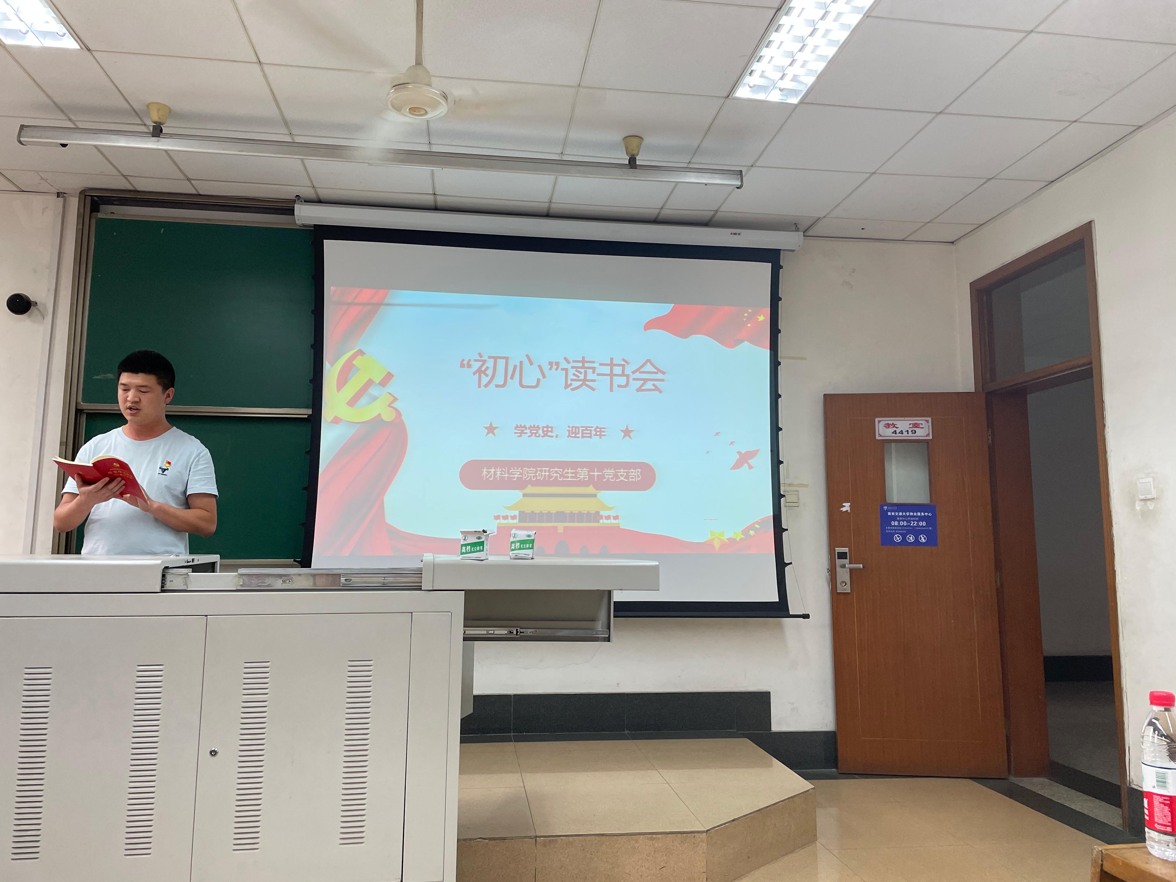 为深入学习贯彻习近平新时代中国特色社会主义思想,热烈庆祝中国共产党建党100周年,按照新时代党建工作要求,根据公司、公司党史学习教育工作部署,为进一步引导青年员工党员“学党史、强信念、跟党走”,6月10日晚19:00,公司第十党支部召开“初心”读书会,进行经典书籍学习分享。本次读书会由党支部书记王誉静主持,公司党委副书记、纪委书记章春军同志参与本次活动,第十党支部全体党员及部分入党积极分子参与本次分享会。