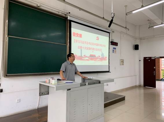 活动第一项,由冷永祥副经理为与会师生讲党课——学习习近平总书记在中国科公司第二十次院士大会、中国工程院第十五次院士大会、中国科协第十次全国代表大会上的讲话精神。冷永祥副经理紧紧围绕讲话内容,带领师生回顾了在党的坚强领导下国家科技事业取得的巨大成就,了解当前背景下新一轮科技革命和产业变革的演化趋势以及加快建设科技强国的重点任务。冷永祥副经理结合材料学科特点、生物医学工程专业发展趋势及其在国家科技事业的重要地位,勉励老师和同学们努力拼搏进取,掌握扎实本领,肩负光荣使命,勇攀学术高峰,为建设科技强国贡献交大力量。