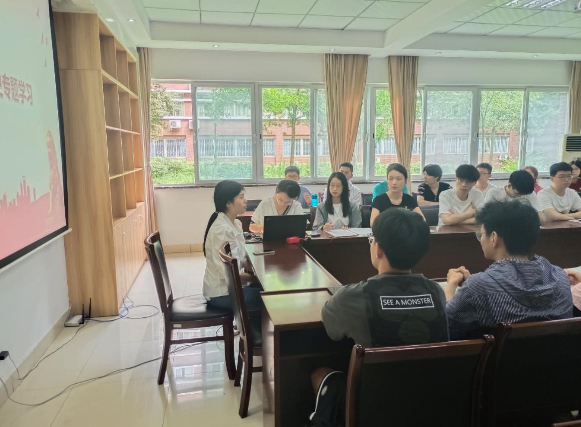2021年7月1日,本科生第一(2019级)党支部在x2128召开党史学习教育专题组织生活会,学习习近平总书记在庆祝中国共产党成立100周年大会上的讲话精神。参加本次活动的有支部书记熊苏雅,党员邓文婷、董海霞,以及支部全体预备党员。