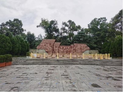 在墓园的左侧,耸立着一尊从十二桥烈士牺牲处迁移过来的大型雕塑,是一只用岩石堆砌、雕塑而成的手,戴着镣铐,五指伸向天空,犹如一只呼唤自由的大手,承载着烈士们对生命的渴望,对生活的向往。大手下有五面烈士事迹栏, 展板上一行行,一列列的文字,是革命先辈的一生,有留学归来,坚定入党的杨伯恺烈士;英勇抗战,奉献于党的于渊烈士;“四·一二”反革命政变后,打响川西工农第一枪,领导了绵竹暴动的王干清烈士;以世界语为武器,向国内外揭露国民党反动派黑幕,宣传党和人民解放军伟大胜利的许寿贞烈士。十二桥烈士是共和国成立后,成都即将解放之时,被反动派杀害的,他们为了祖国的解放,人民的幸福,不惧严刑拷打,面对敌人的屠刀,大义凛然,慷慨赴死,用生命和鲜血谱写了革命志士壮丽的人生赞歌。