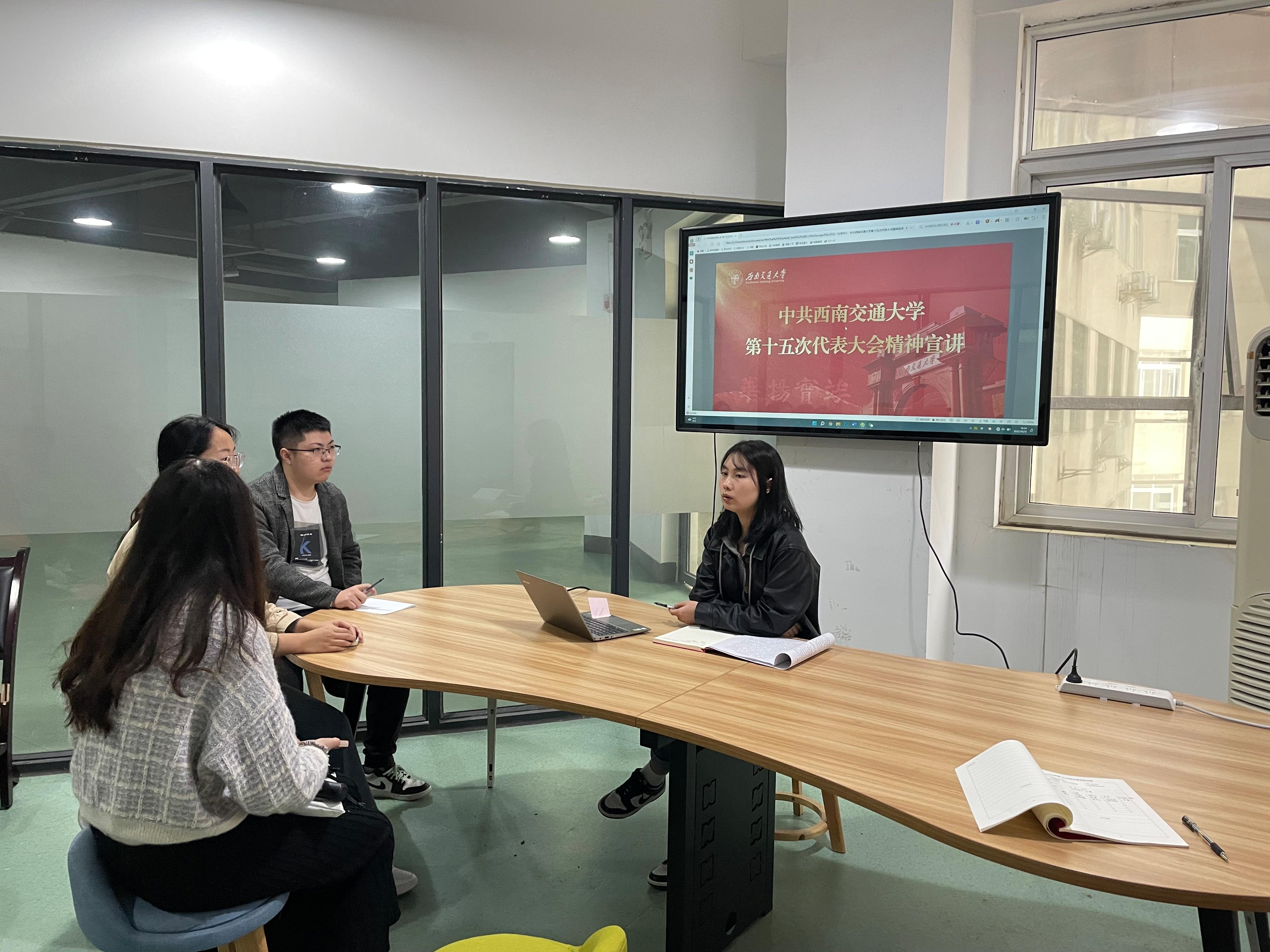 2022年10月12日,研究生第三党支部在3318开展了“喜迎二十大,复兴交大有我”主题党日活动。本次活动由支部书记罗丹同志主持。