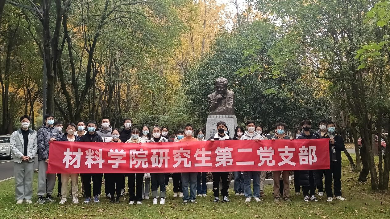 为深入学习贯彻习近平新时代中国特色社会主义思想、学习贯彻党的二十大精神,提高支部党员的爱国情怀、培养交大党员竢实扬华、自强不息的优良品质、锻炼交大材料人不畏艰苦、献身科学的奋斗精神,引领支部党员争做时代先锋,为谱写全面建设社会主义现代化国家崭新篇章提供强劲动力。2022年12月8日,公司研究生第二党支部全体党员和积极分子于3号教学楼下陈能宽院士雕像处开展学习党的二十大与科学家(陈能宽)精神、弘扬革命志士优秀文化的专题活动。