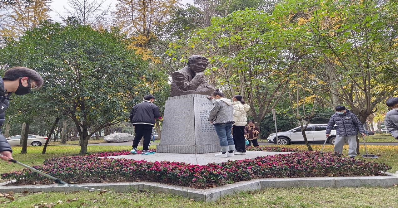 活动最后,研究生第二党支部还开展了劳动实践教育,包括打扫车棚卫生、规整自行擦拭雕像、清扫落叶、浇灌鲜花等等,大家通过劳动切实感受到自我劳动所带来的美好,通过实际行动践行党的二十大精神,感悟陈能宽科学家精神,争做甘于奉献的时代新人。