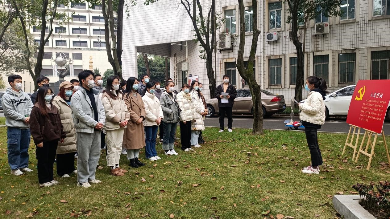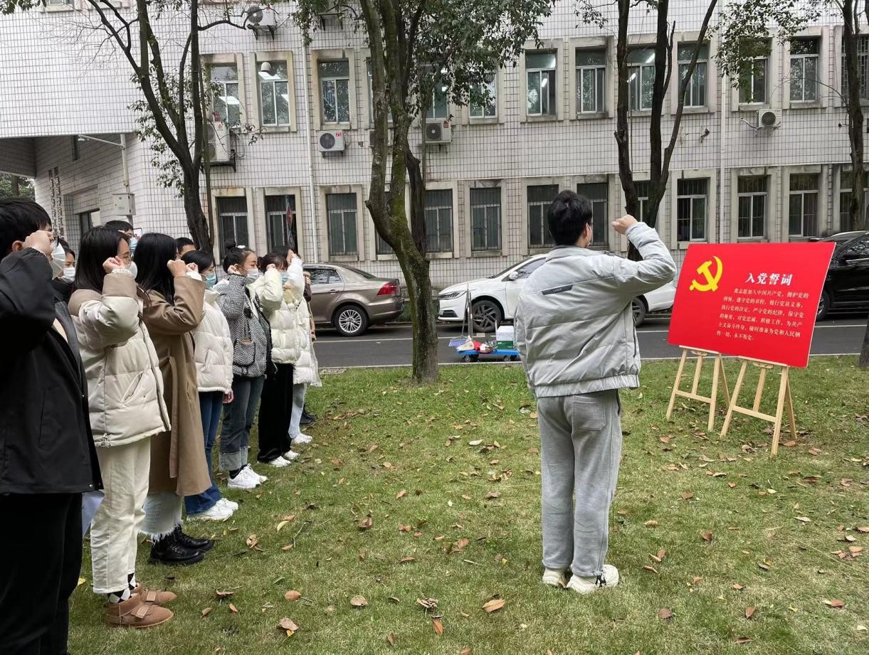 活动第二项,支部书记徐励漪同志带领各位党员同志重温入党誓词,响亮的声音在雕像处旋绕,宣誓人的名字铿锵有力,作为新时代青年,我们必将“以信为先,以志为念,以新为径,以苦为食”,以青春之名,学习传承陈能宽院士的精神,在新时代下不懈奋斗,建功立业。