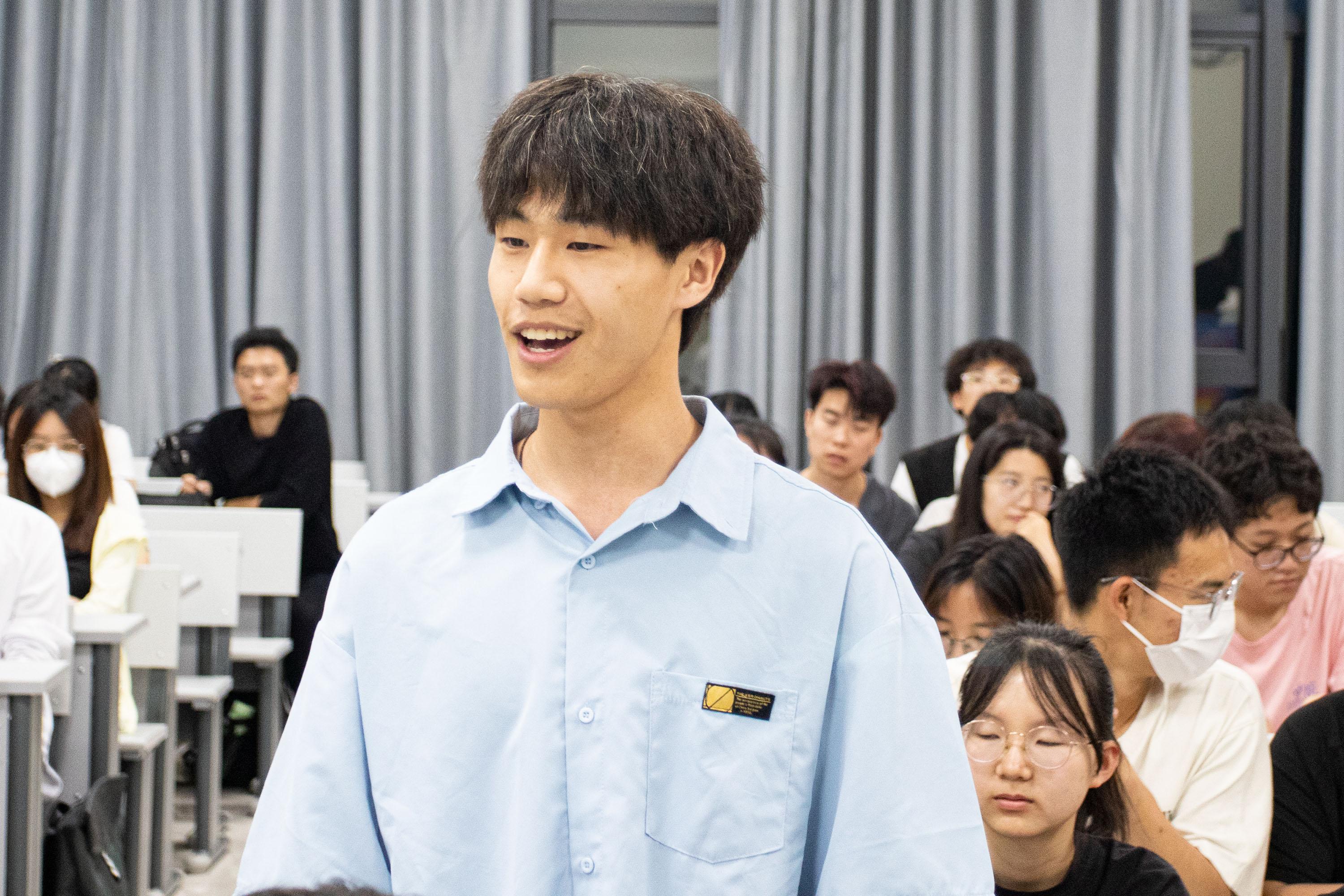 随后进入学习科学家事迹及自由讨论环节。讲演团徐雄学长通过猜谜的形式,加深了同学们对新时代科学家精神的学习,每一位同学都积极参与到活动中。通过自由讨论环节,同学们也更加明确了自己曾立下的青春誓言。徐雄分享到:桃李不言,下自成蹊。科学家精神正如永不熄灭的火花,致敬那些托起共和国民族脊梁的科学家们!