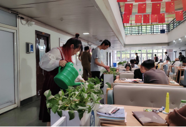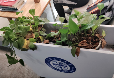 犀浦校区2号教学楼一楼自习区是深受同学们喜爱的学习场所。近段时间,自习区的绿萝疏于管理,枯叶、烂叶积累较多,部分绿萝缺水枯萎,严重影响自习区环境。为了美化自习区环境、营造舒适学习氛围,支部同志在发现这个情况后,积极行动起来,组织大家一起为绿萝修剪、翻盆、浇水、移栽,打扫自习区卫生。经过大家的辛勤劳动后,自习区的绿萝得到了有效打整,学习环境焕然一新,让同学们的期末复习更加舒适。