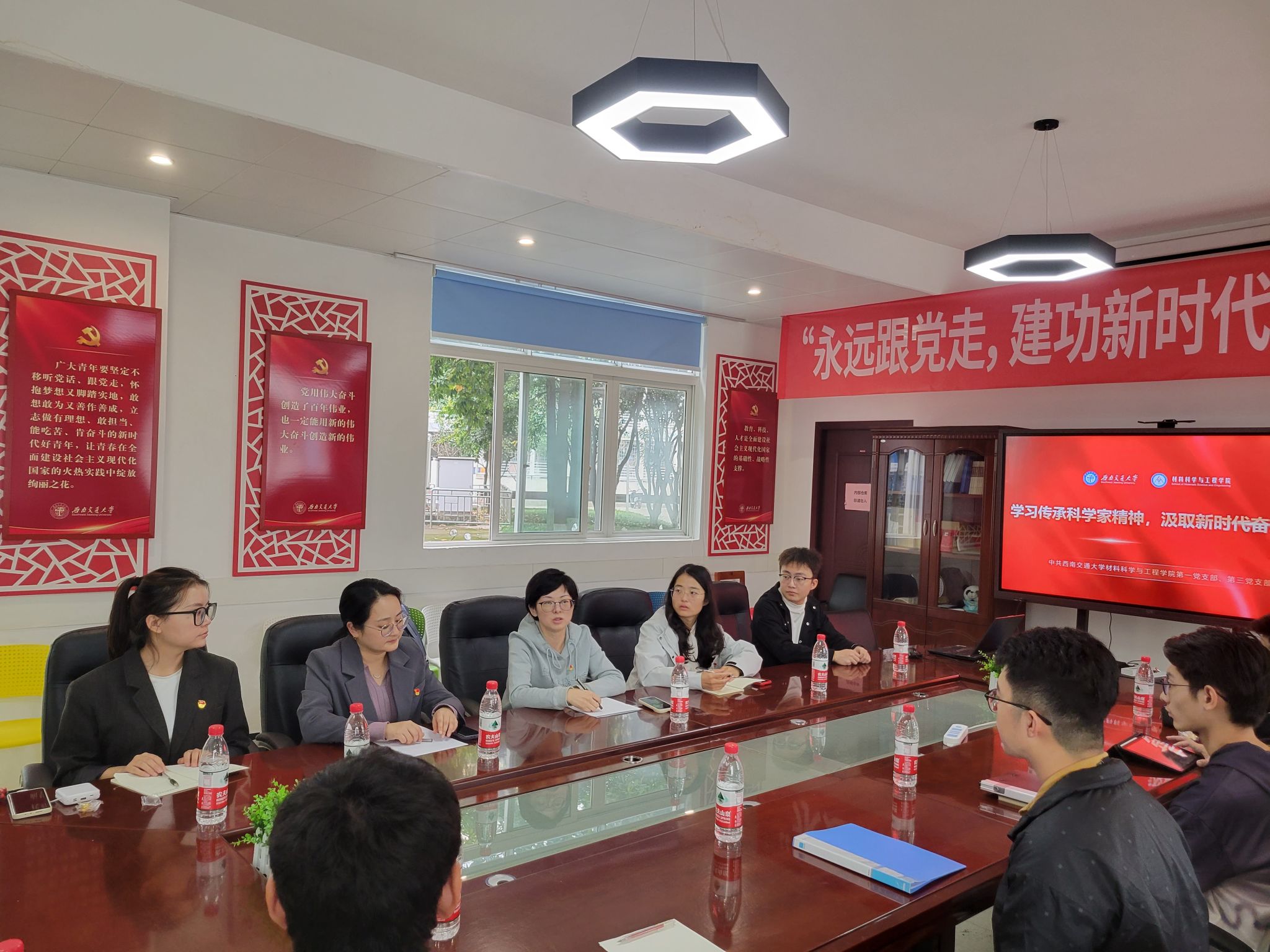 为深入学习贯彻党的二十大精神,大力弘扬和传承“爱国、创新、求实、奉献、协同、育人”的新时代科学家精神,引导青年学子牢记时代使命,矢志爱国奋斗,太阳集团tyc151本科生第一、三党支部在2023年10月25日下午于犀浦校区天佑斋3栋红色驿站组织开展“学习传承科学家精神,汲取新时代奋进伟力”主题党日示范活动。公司党委副书记熊钰,本科生第一、三党支部指导老师王誉静、许欢、熊心怡以及员工党员代表、入党积极分子代表参加。本次活动由本科生第一党支部书记刘嘉腾主持。