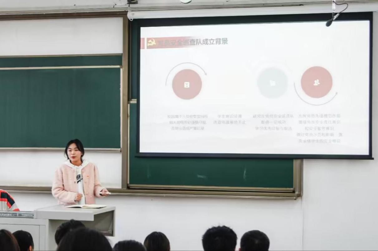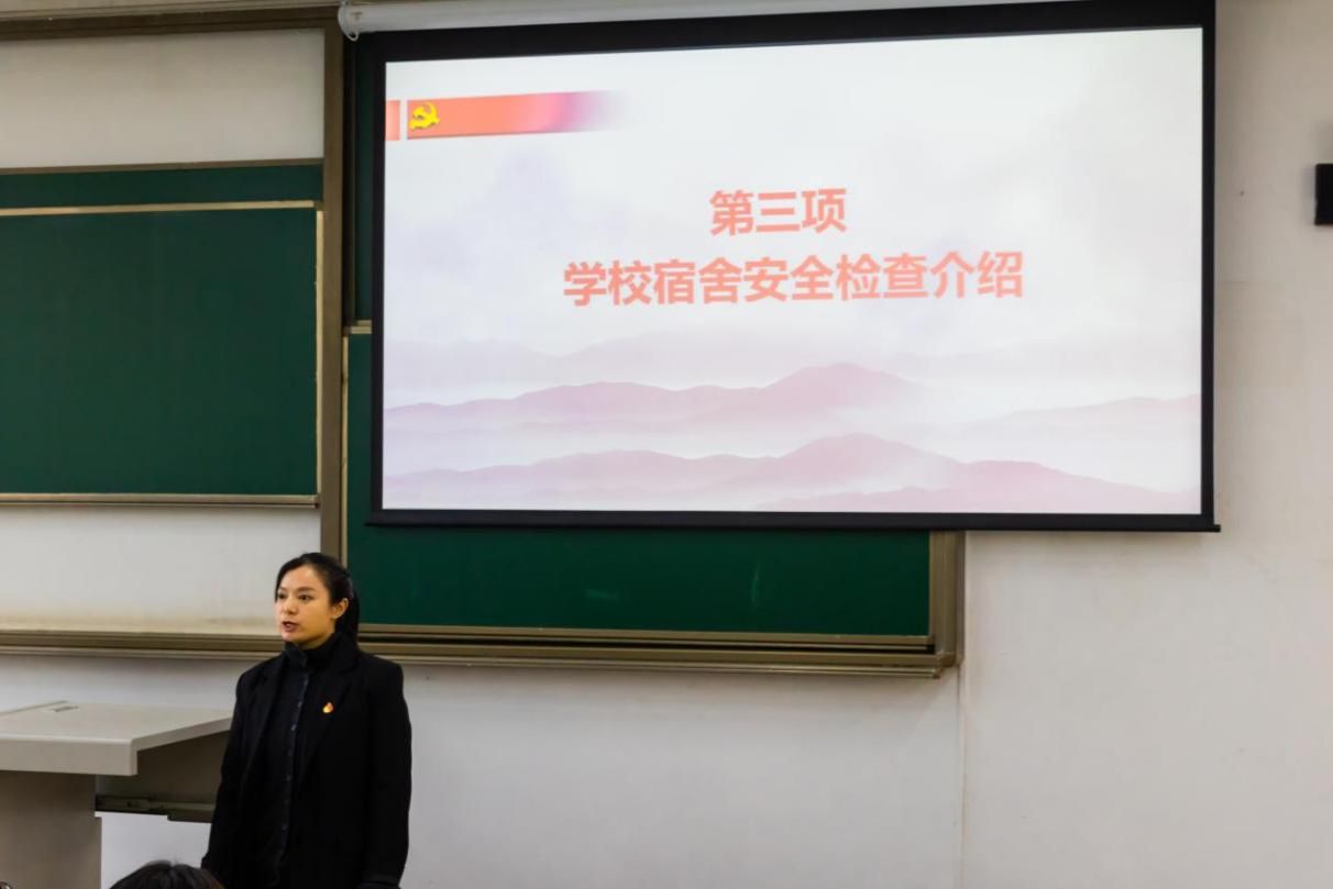 张若男老师为与会党员同志进行宿舍安全巡查专项培训,带领大家了解巡查机制。她从警示案例切入,揭示宿舍火灾的重大危害,详细介绍宿舍安全巡查具体要求,要求各党支部认真落实工作安排。
