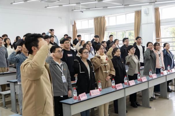 与会老师为新发展入党同志举行党徽佩戴仪式,并分组为员工党员宿舍授牌。老师们嘱托各位同志时刻牢记党员身份,做好表率,在服务师生中践行入党初心。