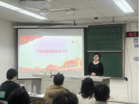 活动第五项,熊钰对党支部工作进行指导,强调党建引领科研发展,把党建在每一个科研团队上,更好地发挥党组织的战斗堡垒作用和党员的先锋模范作用,促进科技创新和成果转化。她强调,党员干部要重视党建工作,严把党员发展关。她指出,党员个人的成长与发展是长远的、终身受益的,党员同志要爱惜自己的政治身份,辩证、客观地看待事物,做到谨言慎行,做一名合格的党员。