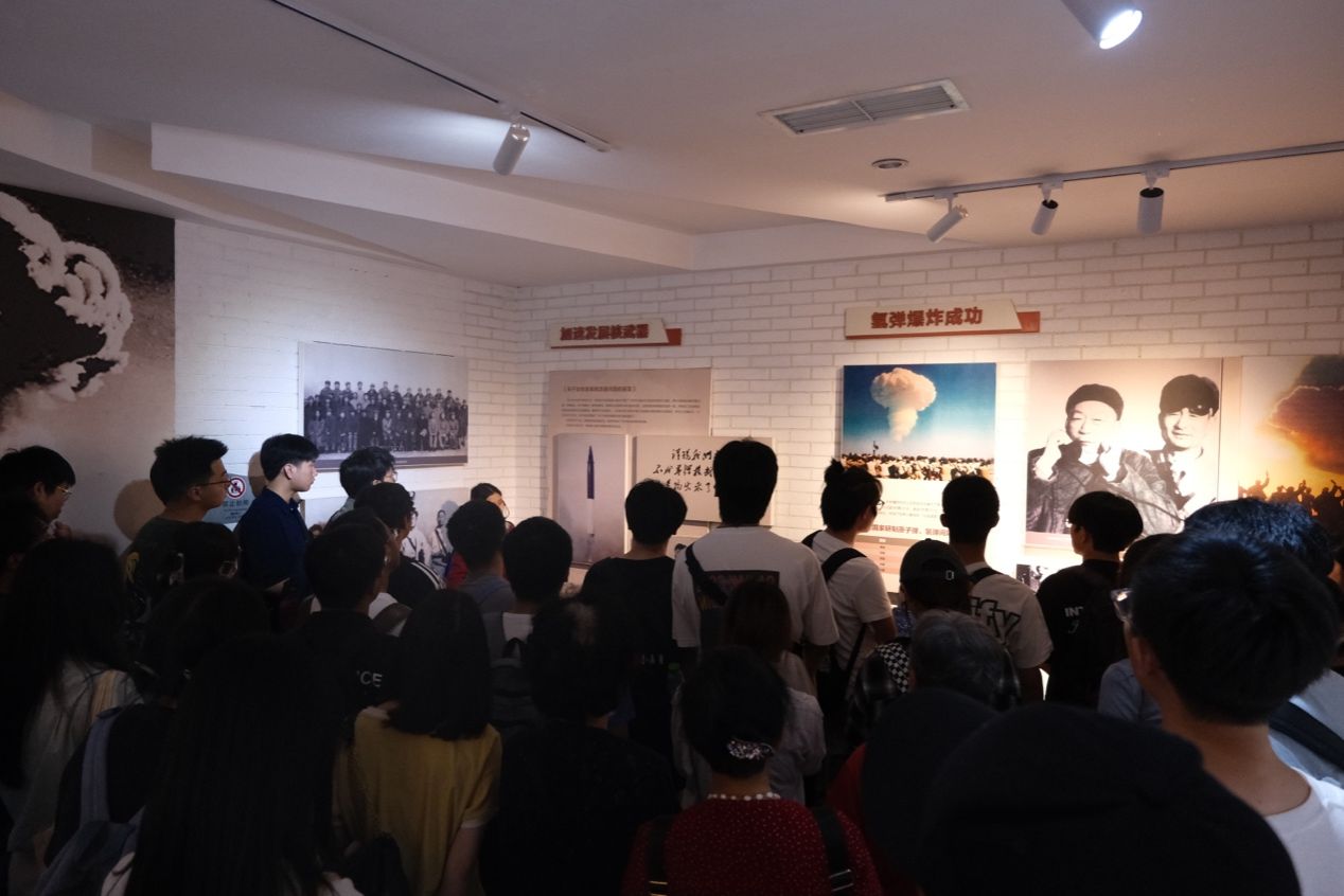 铭记历史,吾辈自强。在邓稼先旧居前,本科生第三党支部书记孙熙桐带领党员代表重温了入党誓词。誓词虽短,字字千钧,铮铮誓言表达了党员同志们不忘初心、牢记使命,作为交大学子致力于实现高水平科技自立自强的信念和决心。宣誓后,师生党员在“两弹”功勋墙前展开交流讨论。党员同志及发展对象们积极发言,纷纷表示,通过此次实践研学,他们更加深刻地认识到作为一名共产党员的使命担当,有责任把老一辈科技工作者的科学家精神传承下去,发扬光大,立志科研,报效祖国,为实现中华民族的伟大复兴贡献自己青春的力量。