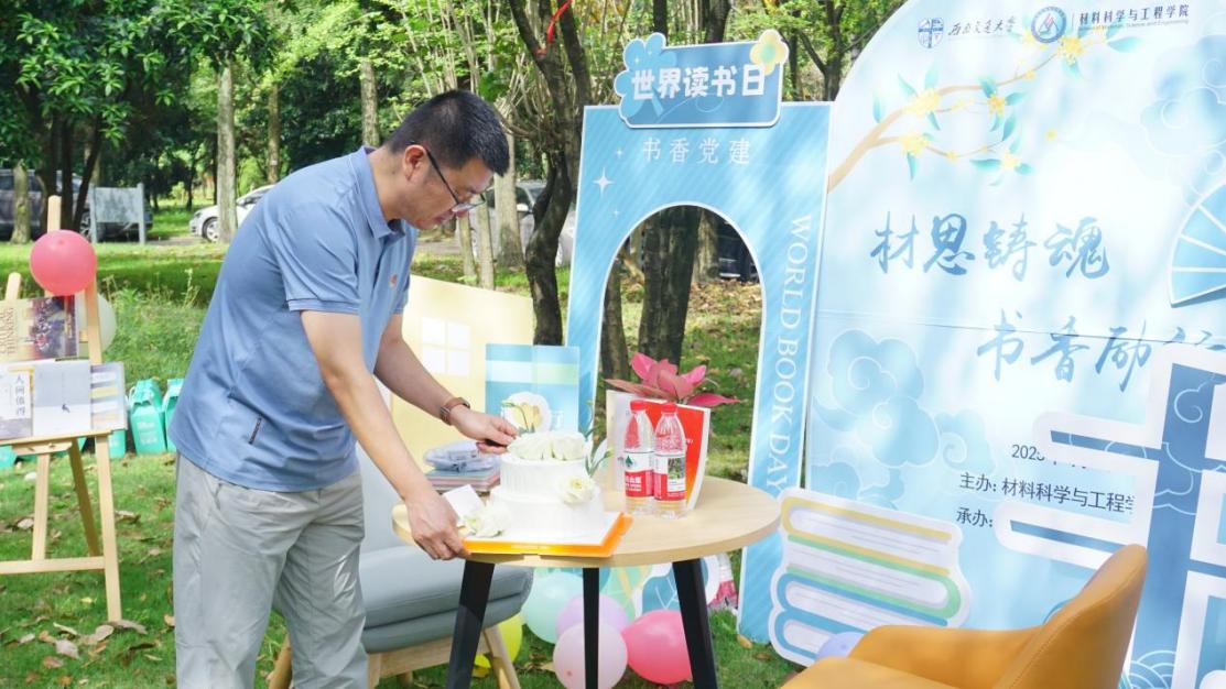 上午10点,草坪读书会如期开始。公司党委书记沈哲,党委专职组织员严翼飞,团委书记王誉静,研究生辅导员张宝开出席本次活动,与支部党员共沐书香。在世界读书日活动启动仪式上,公司党委书记拿起餐刀,轻轻切开象征知识与希望的精美蛋糕,为这场书香盛会拉开精彩帷幕。
