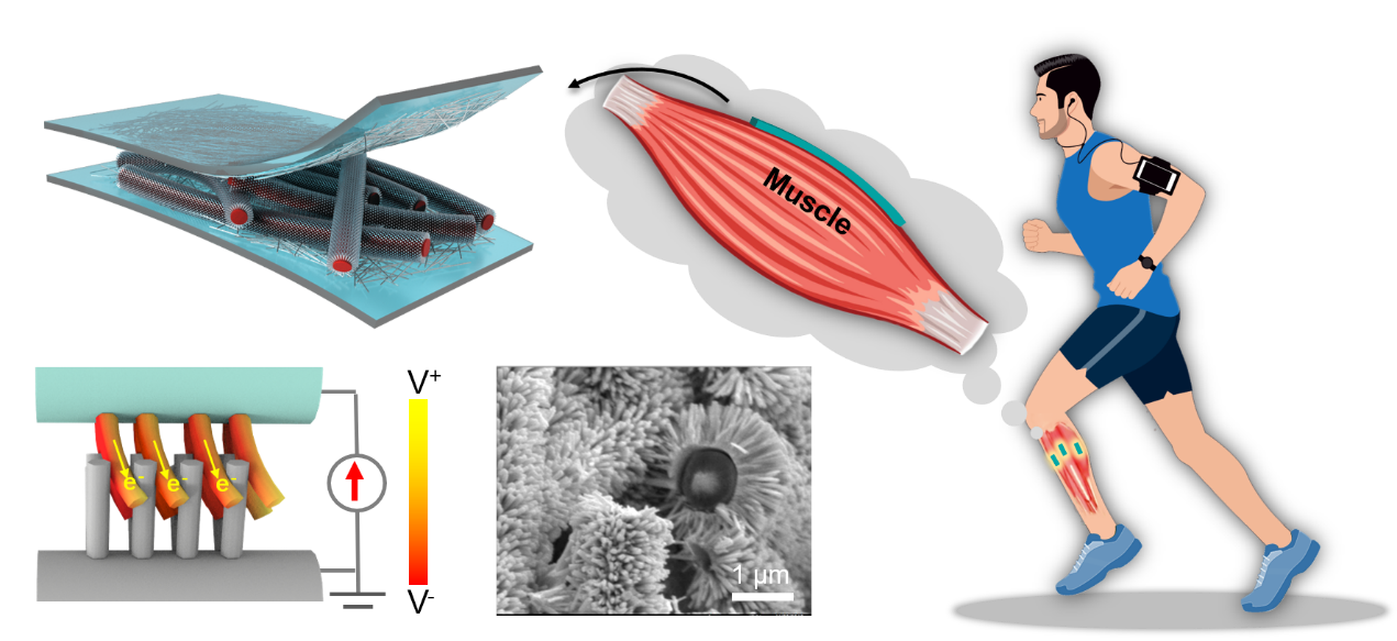 Figure 2. The three-dimensional hierarchically interlocked PVDF/ZnO fibers-based PME for muscle behavior monitoring