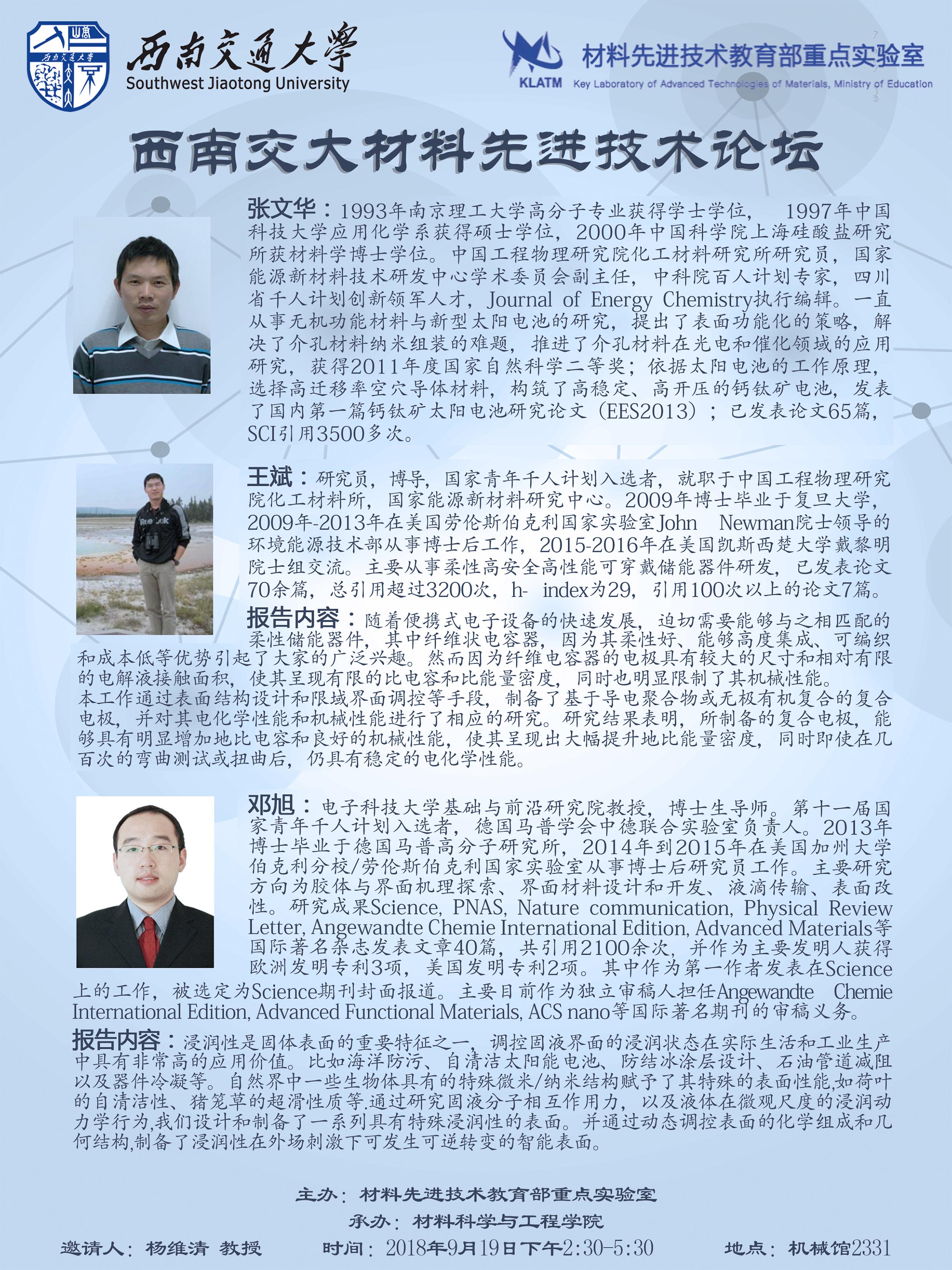 创源大讲堂”——材料科学与工程学术论坛(二)主办:材料先进技术教育...