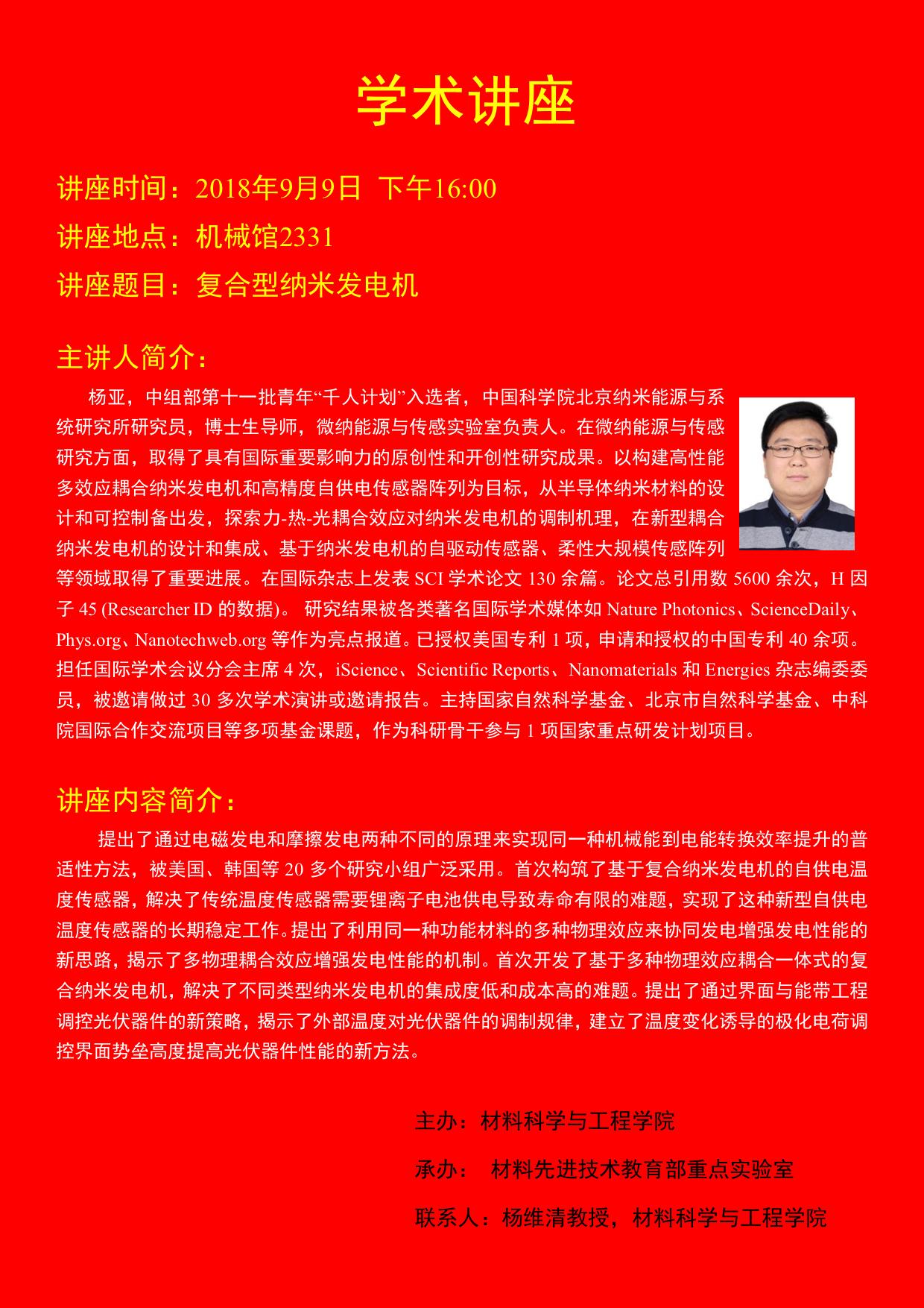 讲座时间:2018年9月3日上午10:00地点 :机械馆2333(太阳集团tyc151会议...