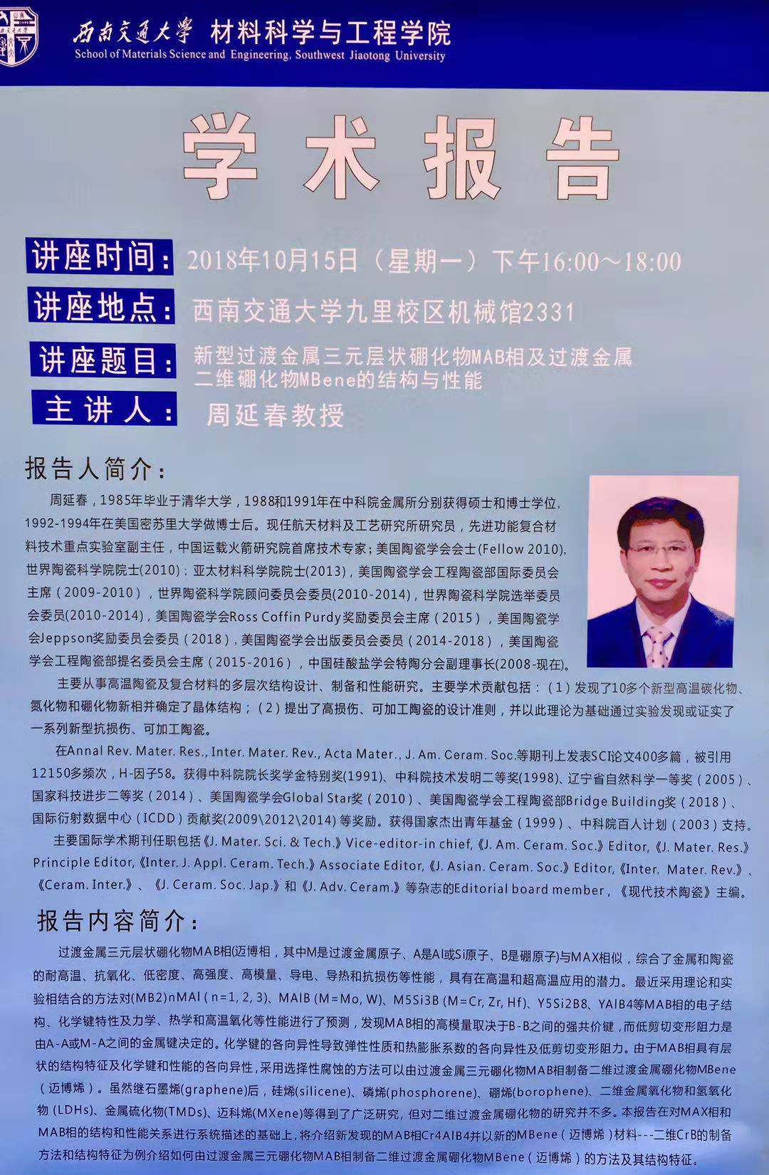 讲座题目:Bioceramic Coatings on Biodegradable Magnesium Alloys for...